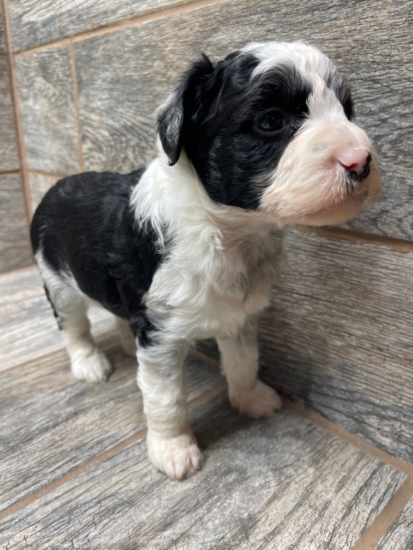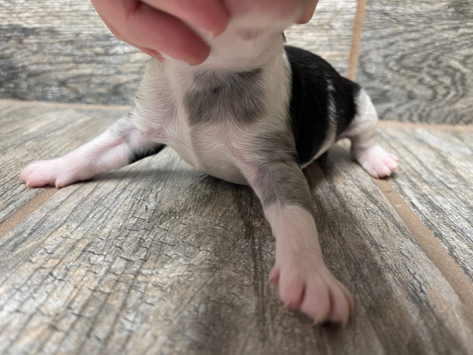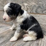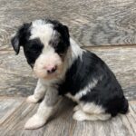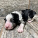 SMBLUMF8- WHOA! Stunning blue merle female! These puppies come with a 2 year health guarantee, health record listing vaccines/dewormers, registration papers, and are examined by the vet and issued a health certificate before they leave. These babies are hypoallergenic and little to no shedding. They are bred with wonderful temperaments and are doggy door trained to potty outside so house training is a breeze! My 4 yr old son “helps” and plays with the puppies so they are exposed to children. If you are wanting one of these pups we sometimes make a delivery route to STL or 2 hours from the house depending on customer locations and amount of pups heading that direction so we can set up a meeting route with a small fee if that ends up working for everyone. We offer airline shipping or flight nanny just need to see on quotes and shipping time frame. We are a small family business as well as a state licensed and inspected kennel. Thank you so much for supporting us! Welcome to the Double R Family!
