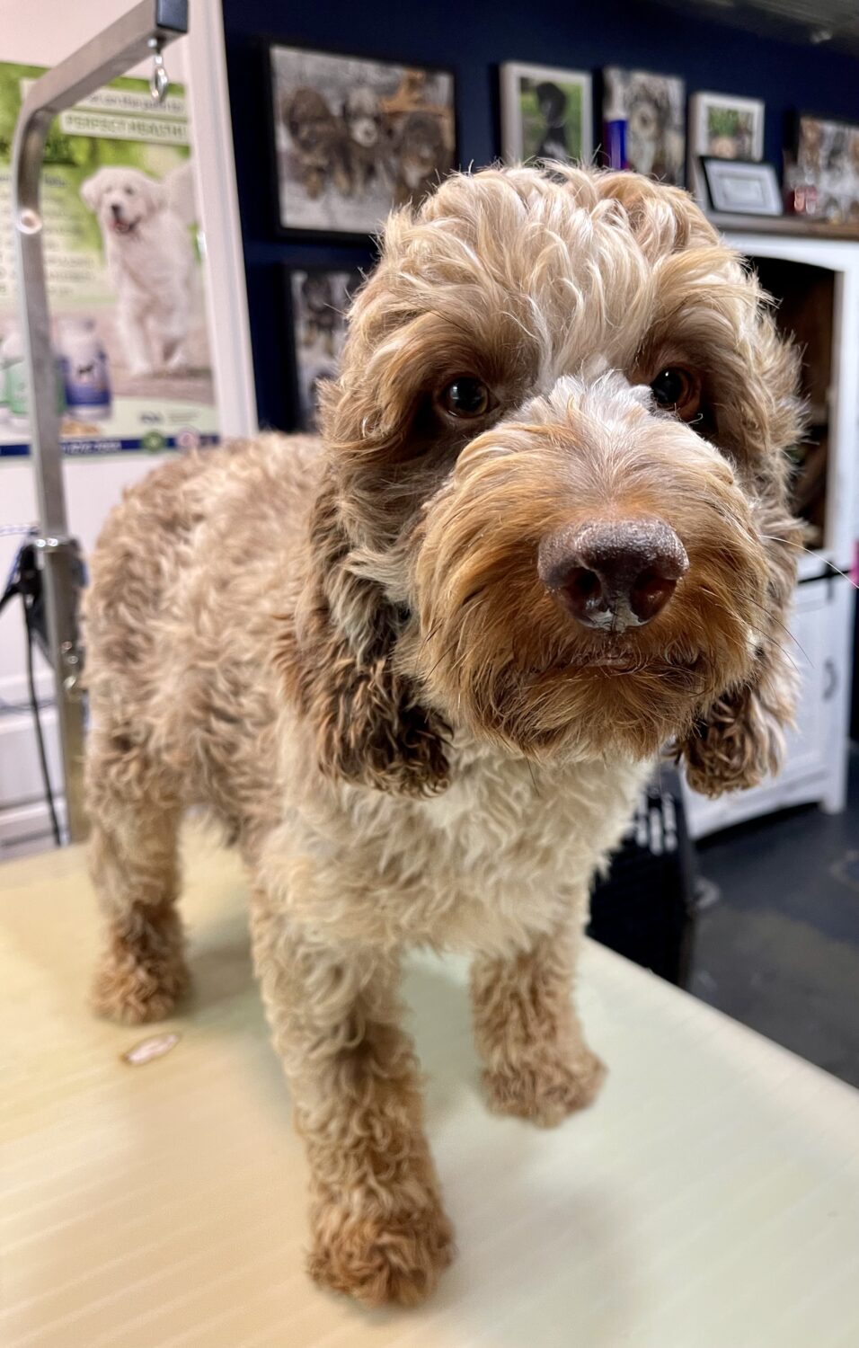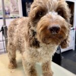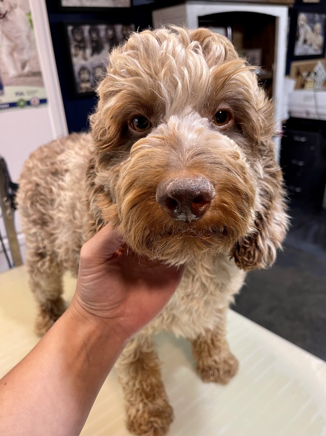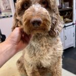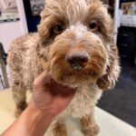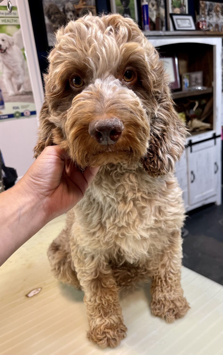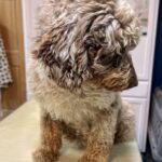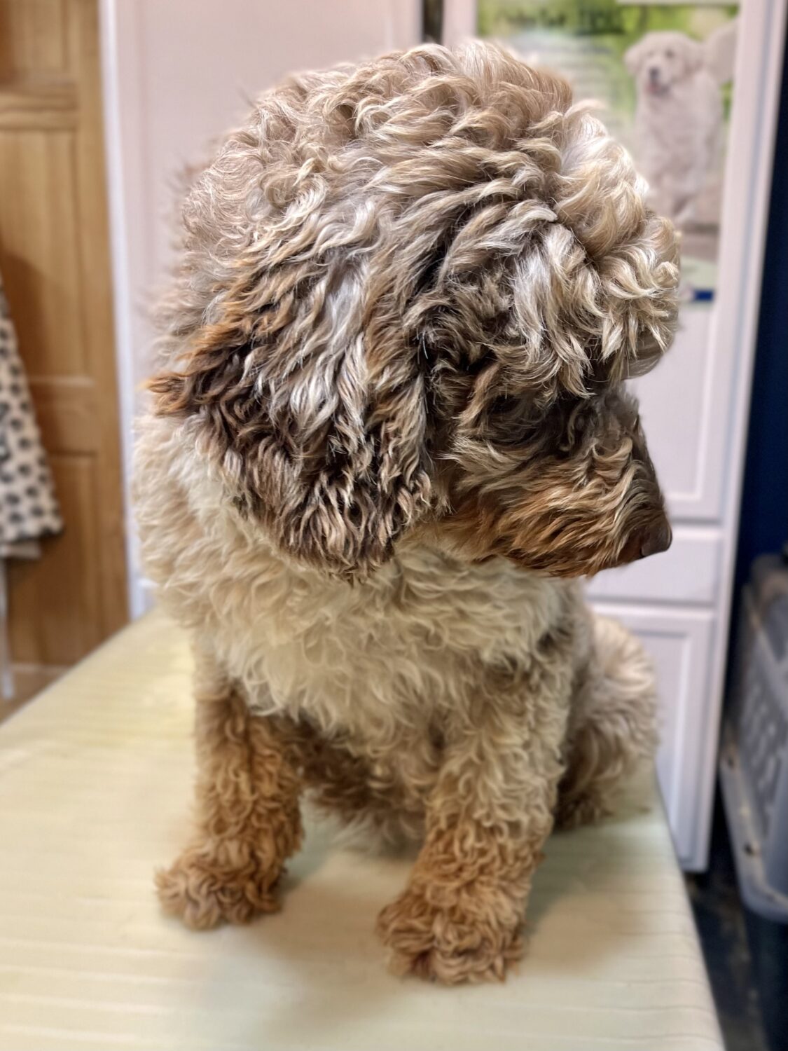 Miss Autumn is a home grown chocolate merle female aussiedoodle with dark copper mixed all over her! Autumn is super sweet with an excellent temperament. She is a snuggle bug and can make toy or mini aussiedoodles for us. She is 16 inches tall at the shoulder and 22 pounds. She is the daughter of Double R Eclipse and Double R NB. I will be doing new pics when she weans pups!