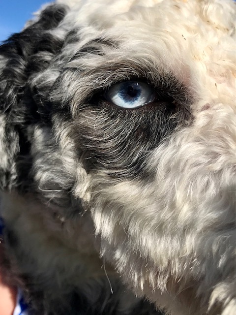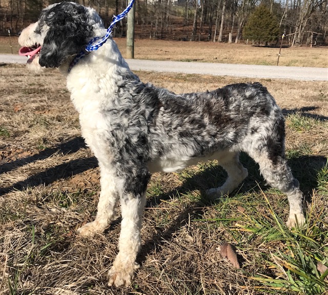 Double R Merle Breed: Aussiedoodle Sex: Male Availability: no-sale Additional Photos About Double R Merle Merle is a handsome blue merle male mini aussiedoodle out of Reba X Monroe with two icy blue eyes!! He is 15 inches tall and 20 pounds.