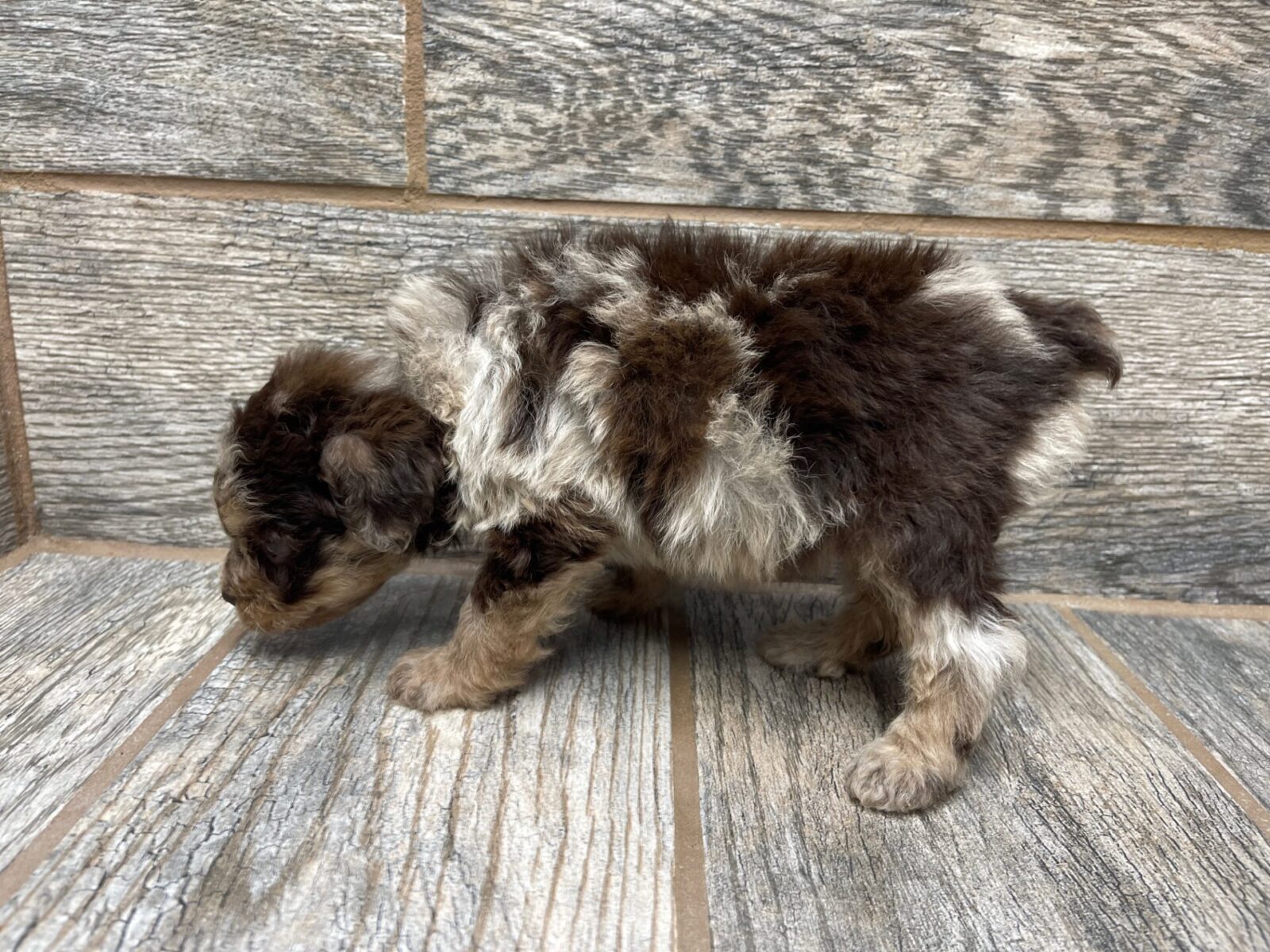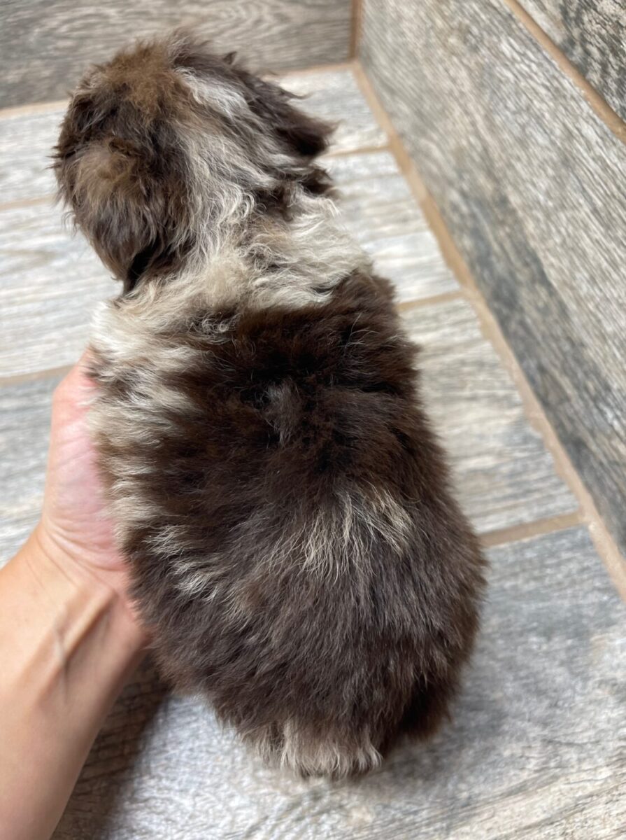 MSCHOCMF7- Sweet chocolate merle female with copper! These puppies come with a 2 year health guarantee, health record listing vaccines/dewormers, registration papers, and are examined by the vet and issued a health certificate before they leave. These babies are hypoallergenic and little to no shedding. They are bred with wonderful temperaments and are doggy door trained to potty outside so house training is a breeze! My 4 yr old son “helps” and plays with the puppies so they are exposed to children. If you are wanting one of these pups we sometimes make a delivery route to STL or 2 hours from the house depending on customer locations and amount of pups heading that direction so we can set up a meeting route with a small fee if that ends up working for everyone. We offer airline shipping or flight nanny just need to see on quotes and shipping time frame. We are a small family business as well as a state licensed and inspected kennel. Thank you so much for supporting us! Welcome to the Double R Family!