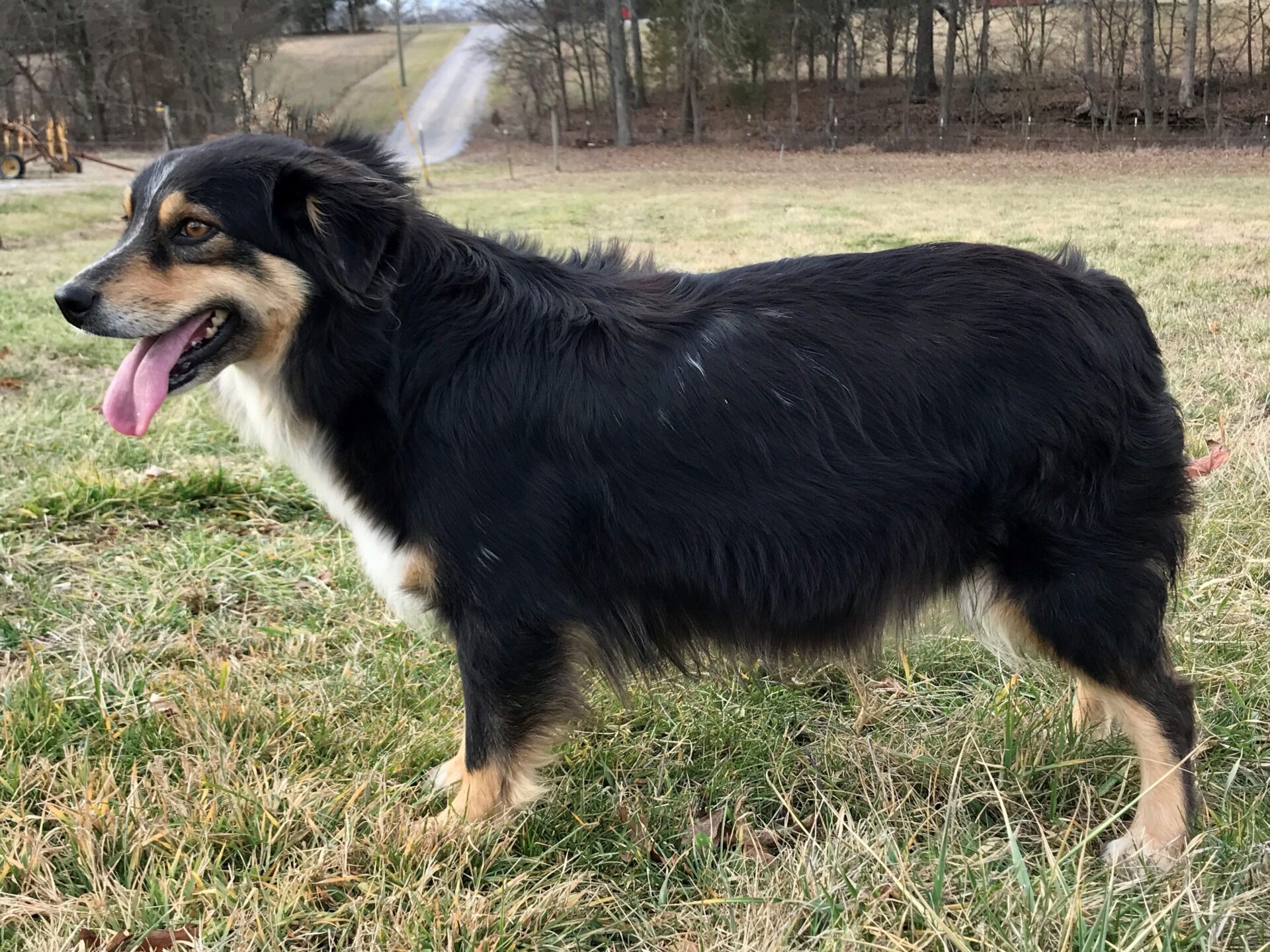 Molly is a beautiful black tri Australian Shepherd female.  She is registered ASDR, she stands 17 ” weighing 32 pounds.  She has been MDR1 tested negative.   Molly is very friendly once she accepts you, like most Aussies it has to be on her terms, in her time.  We are excited to see what Miss Molly is going to produce bred to our moyen blue merle Poodle Double R Tater.  This F1 litter is on it’s way ….watch for it!