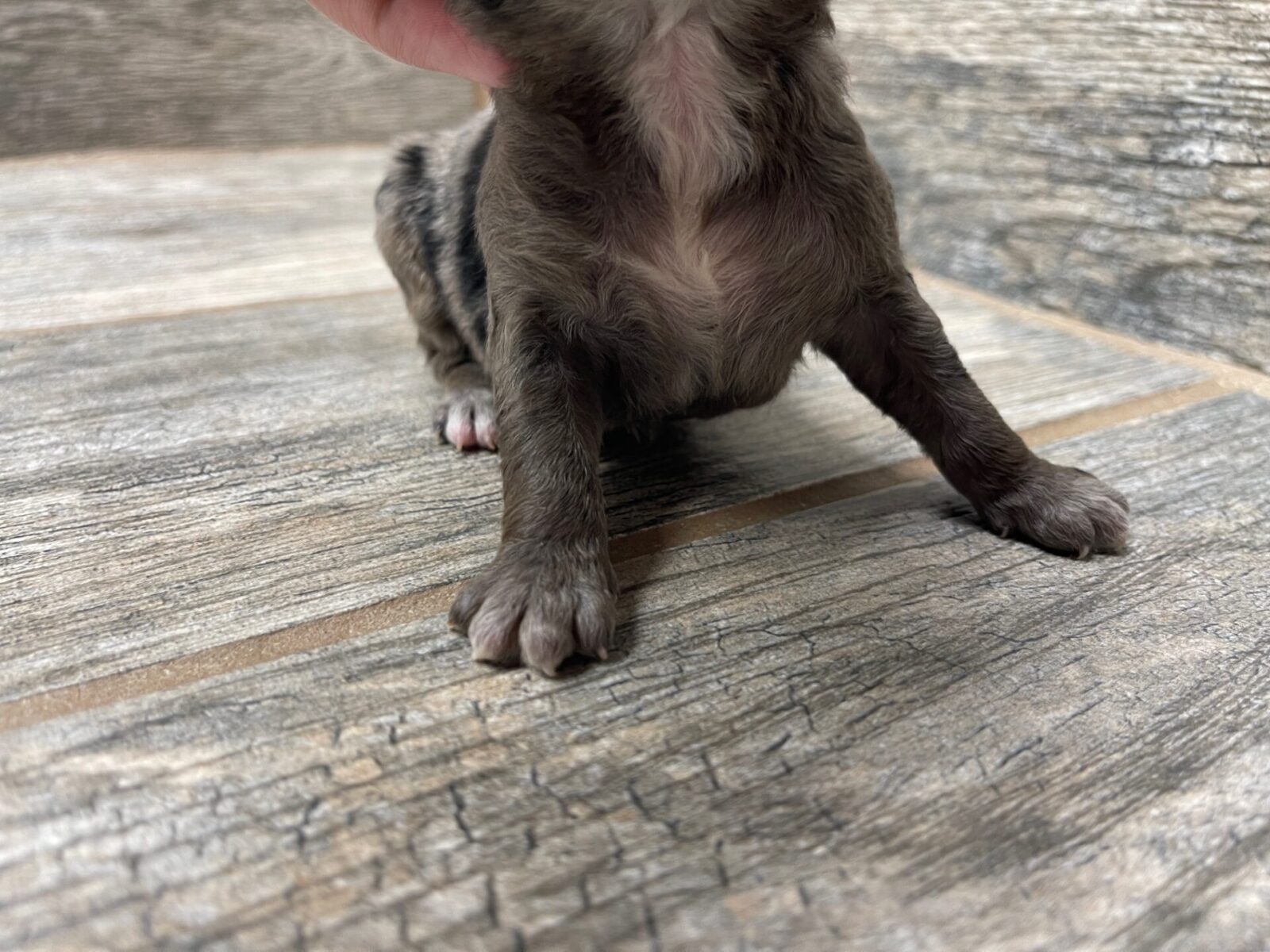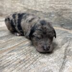 PNBLUMF3- goregous blue merle female with copper! These puppies come with a 2 year health guarantee, health record listing vaccines/dewormers, registration papers, and are examined by the vet and issued a health certificate before they leave. These babies are hypoallergenic and little to no shedding. They are bred with wonderful temperaments and are doggy door trained to potty outside so house training is a breeze! My 4 yr old son “helps” and plays with the puppies so they are exposed to children. If you are wanting one of these pups we sometimes make a delivery route to STL or 2 hours from the house depending on customer locations and amount of pups heading that direction so we can set up a meeting route with a small fee if that ends up working for everyone. We offer airline shipping or flight nanny just need to see on quotes and shipping time frame. We are a small family business as well as a state licensed and inspected kennel. Thank you so much for supporting us! Welcome to the Double R Family!