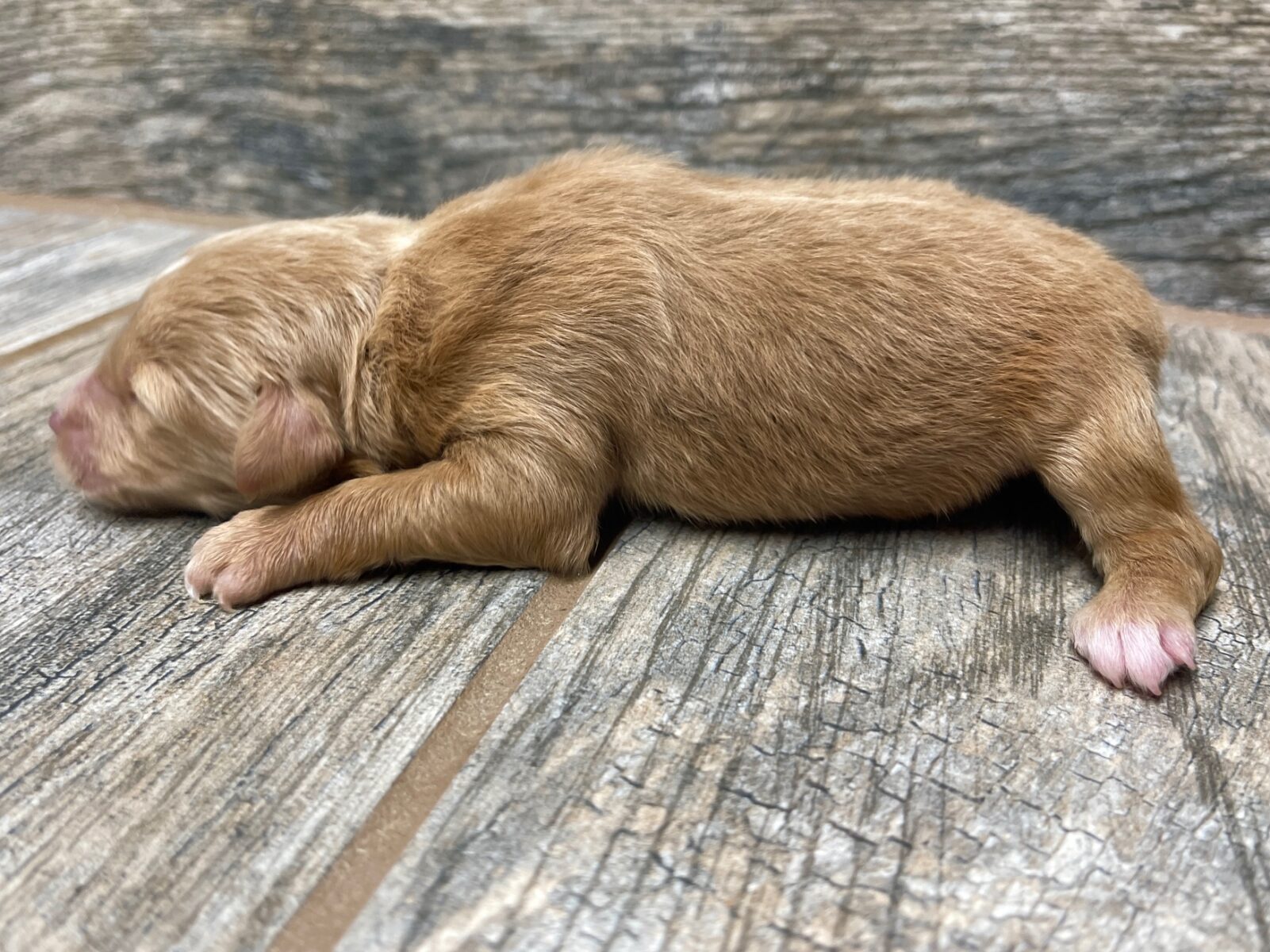 PNAPRF7- adorable apricote female with a little bit of white on her chest, toes and head. These puppies come with a 2 year health guarantee, health record listing vaccines/dewormers, registration papers, and are examined by the vet and issued a health certificate before they leave. These babies are hypoallergenic and little to no shedding. They are bred with wonderful temperaments and are doggy door trained to potty outside so house training is a breeze! My 4 yr old son “helps” and plays with the puppies so they are exposed to children. If you are wanting one of these pups we sometimes make a delivery route to STL or 2 hours from the house depending on customer locations and amount of pups heading that direction so we can set up a meeting route with a small fee if that ends up working for everyone. We offer airline shipping or flight nanny just need to see on quotes and shipping time frame. We are a small family business as well as a state licensed and inspected kennel. Thank you so much for supporting us! Welcome to the Double R Family!