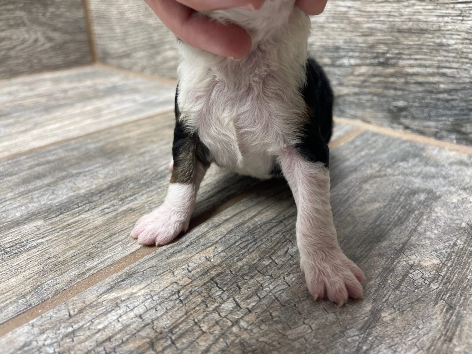 PNBLKTRIM3- Mr. MUSTACHE!! He is a black tri male with vibrant copper and perfect white trim. Look at his little mustache! These puppies come with a 2 year health guarantee, health record listing vaccines/dewormers, registration papers, and are examined by the vet and issued a health certificate before they leave. These babies are hypoallergenic and little to no shedding. They are bred with wonderful temperaments and are doggy door trained to potty outside so house training is a breeze! My 4 yr old son “helps” and plays with the puppies so they are exposed to children. If you are wanting one of these pups we sometimes make a delivery route to STL or 2 hours from the house depending on customer locations and amount of pups heading that direction so we can set up a meeting route with a small fee if that ends up working for everyone. We offer airline shipping or flight nanny just need to see on quotes and shipping time frame. We are a small family business as well as a state licensed and inspected kennel. Thank you so much for supporting us! Welcome to the Double R Family!