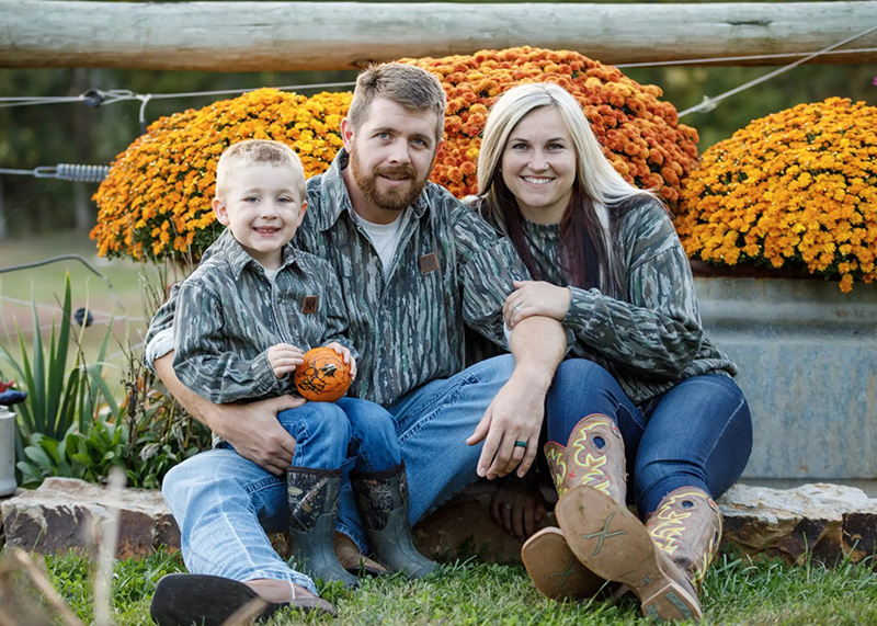 Rob, Aimee, and Robby Hall. Since 2019, our granddaughter Aimee and her husband Rob have taken the lead in managing our breeding program. Aimee holds a degree in Animal Science from Southern Illinois University. The coursework she studied and years of hands on experience growing up alongside Granny all contribute to our exceptional program. Rob ensures all facilities are operating as they should and works alongside his wife to provide the best care for our pups and adults. Robby is the newest member of the pack but he helps with puppy socialization and will soon be cleaning kennels too! Together they all continue the prosperity and longevity of Double R Doodles.
